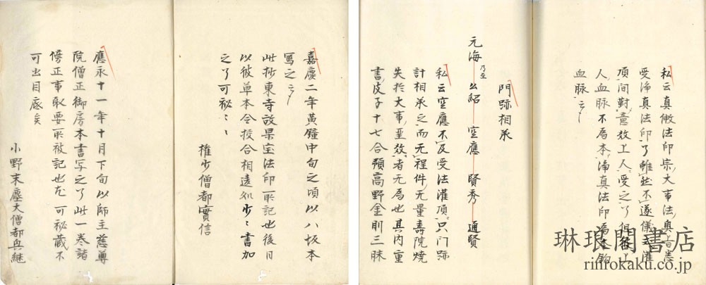 嘉慶二年権小僧都実信、応永十一年小野末塵大僧都奥継書写奥書有